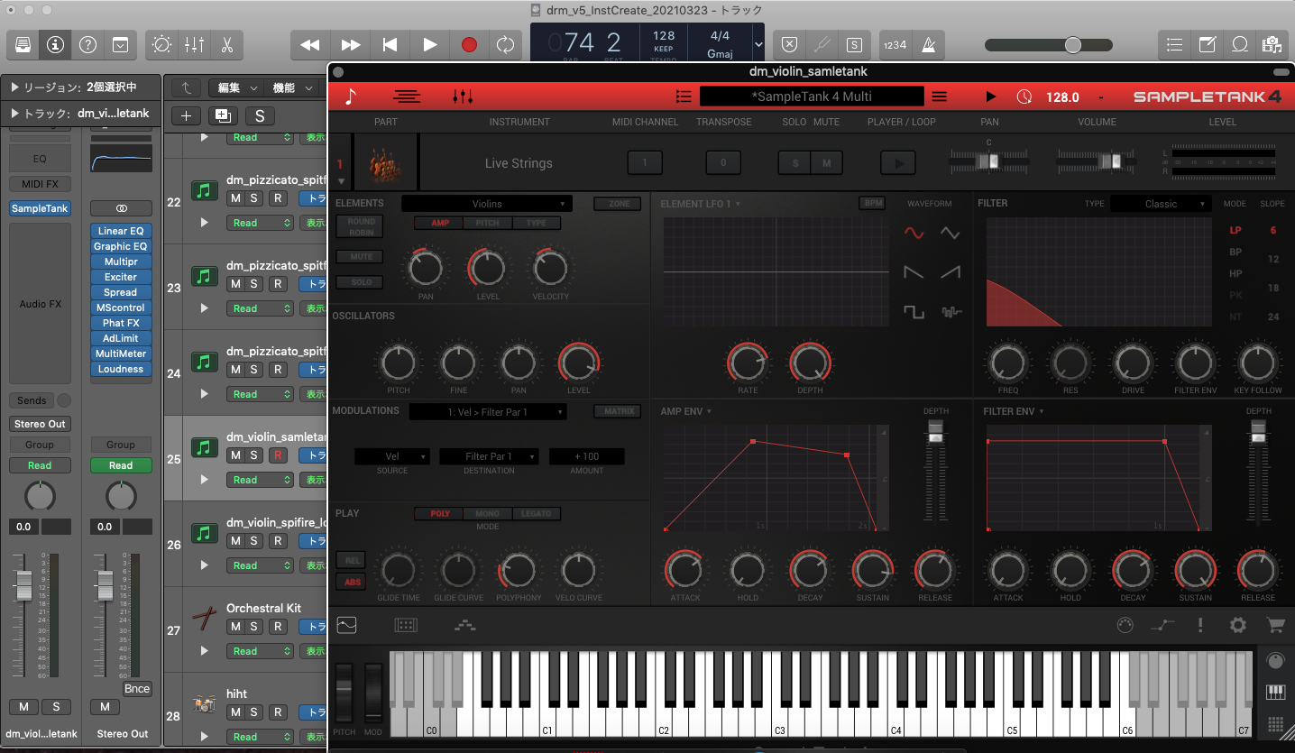 場面場面で使いますが、”SampleTank 4 Custom Shop” のストリングはアタックが若干強く個性的ですので使い方でリアルな弓の雰囲気が出せます。